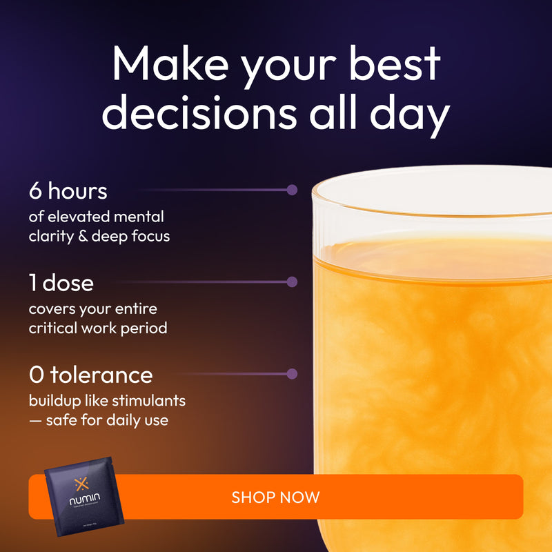 Precursor to focus neurotransmitters. Your brain converts L-Tyrosine into dopamine and norepinephrine - critical for maintaining attention during cognitive demands.